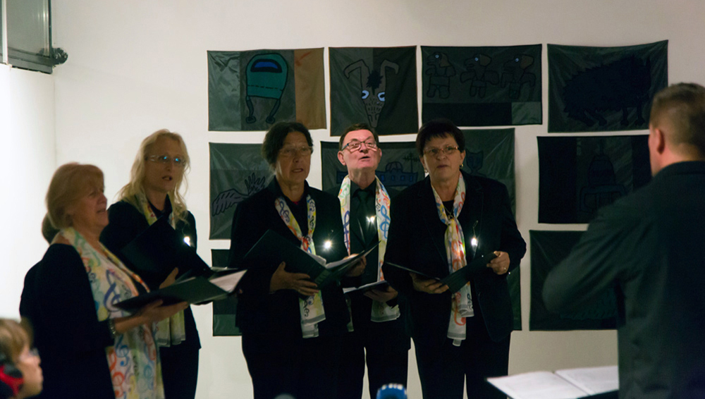 For the Pavelhaus Choir, and together with choirmaster Matija Horvat, I wrote the musical score titled UniversOm. The singers performed UniversOm at the opening of Psst... there is still space in outer space! exhibition in Pavelhaus on October 22, 2016.