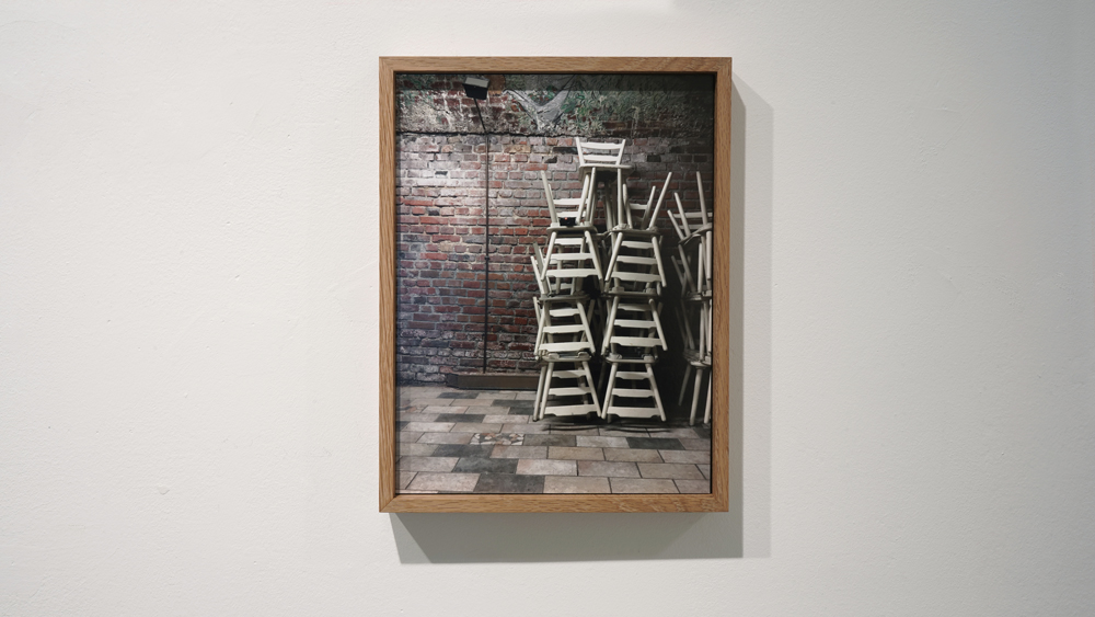These are scenes that are thus more or less random. The ‘real’ picture, the group portrait, is slotted into the back of specially-made oak frames, facing the wall so we do not see them at all. What we see is the back side of the picture, the dark side. Nika Špan, ‘Self-timer’ series.